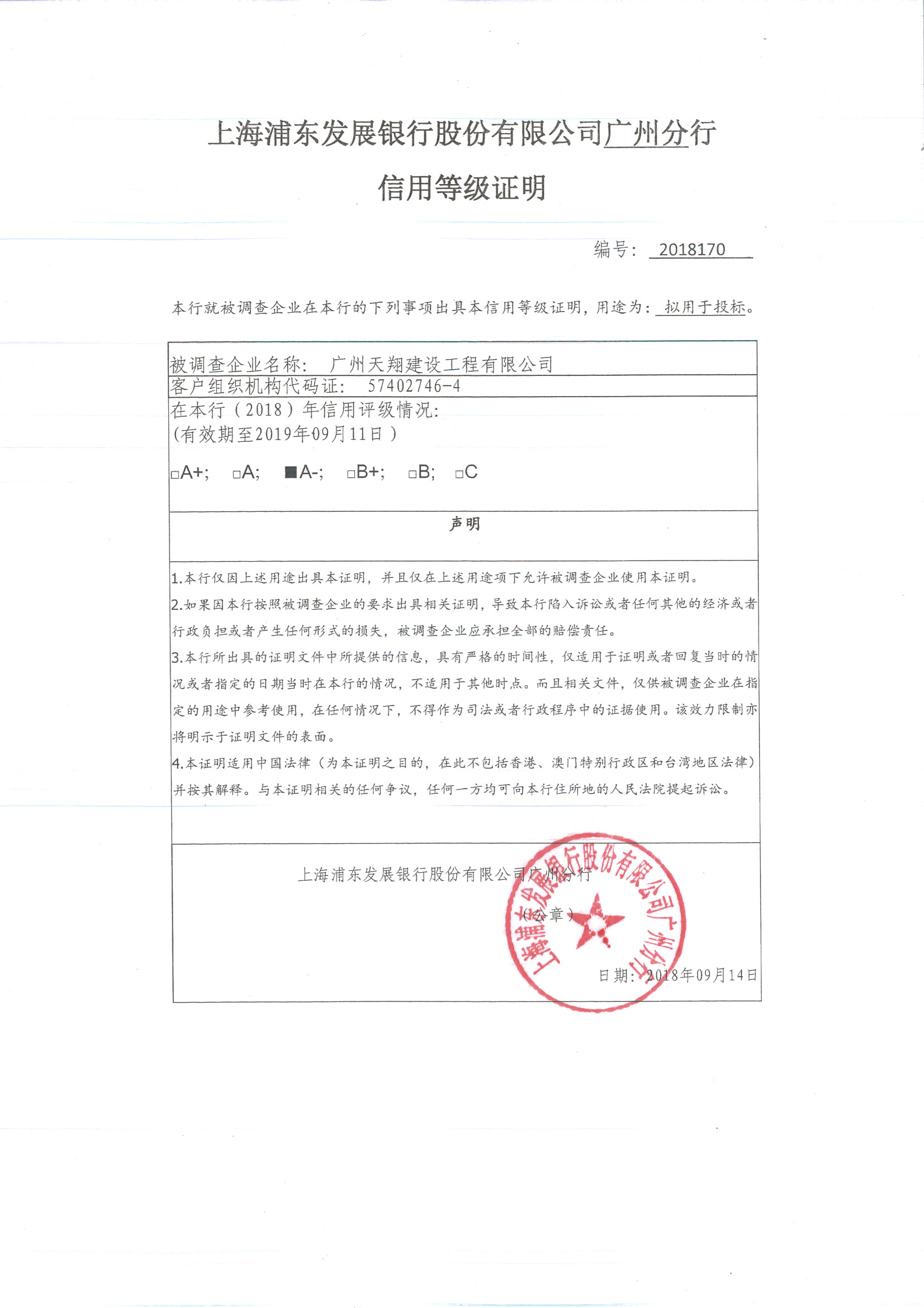 - 企業(yè)信用等級證書