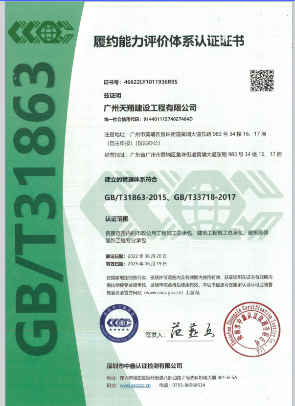 - 履約能力評價體系認(rèn)證證書